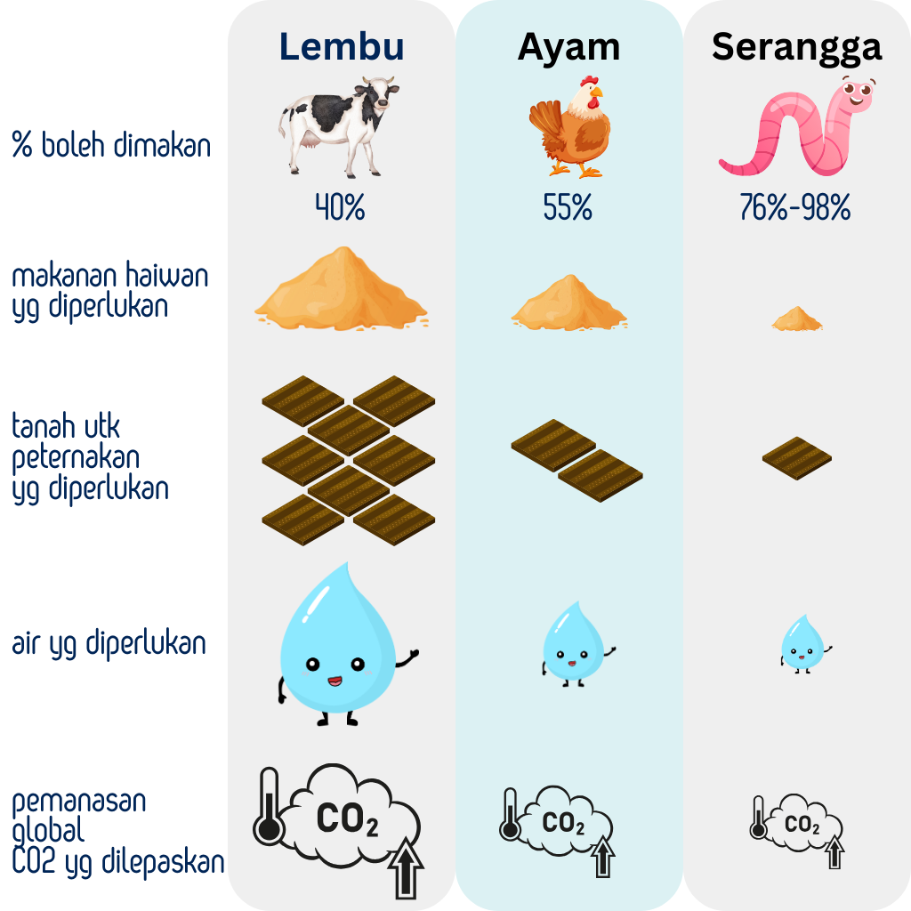 Protein serangga mesra alam dan menggunakan sumber yang lebih sedikit.